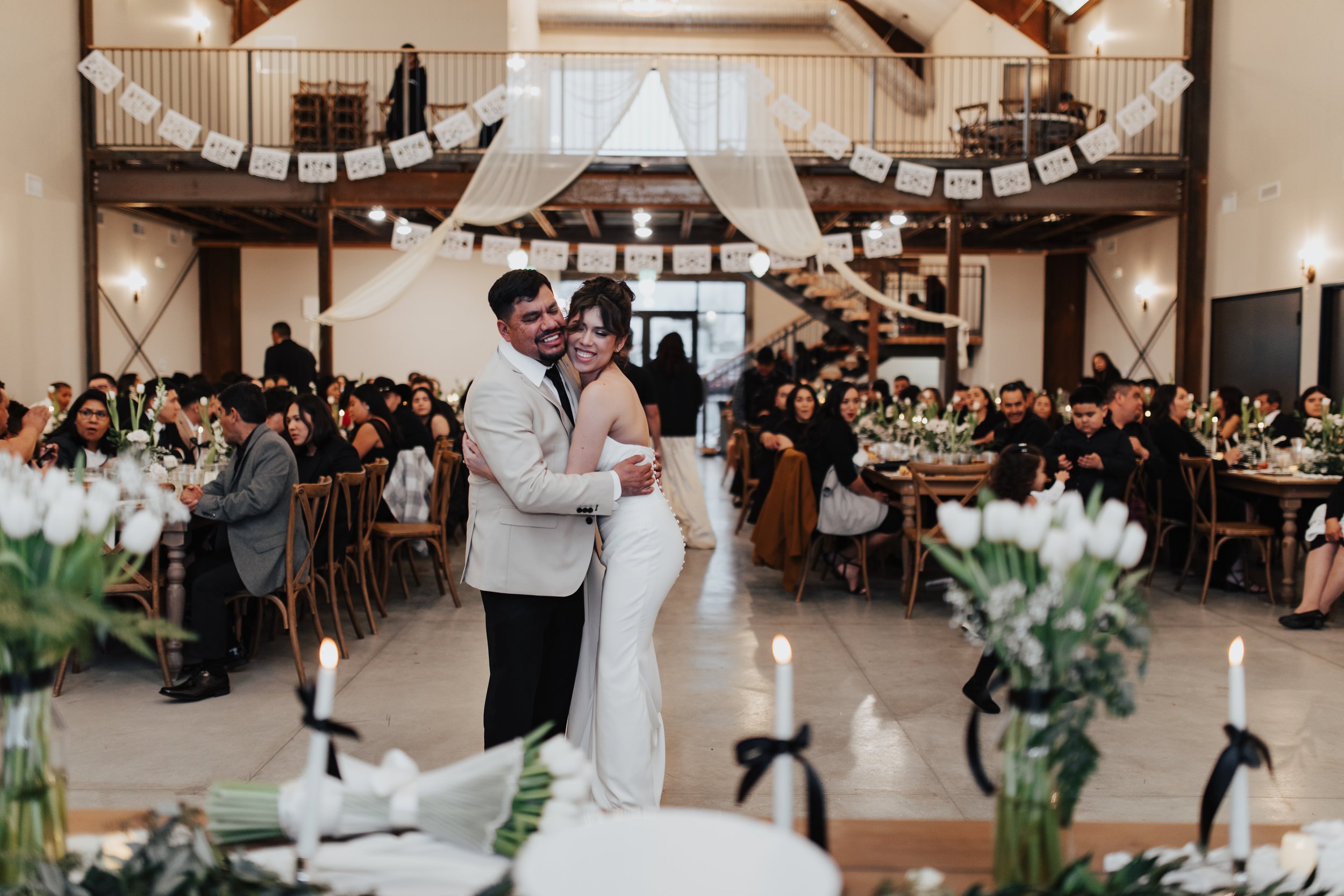 Inside the light-filled bridal suite of the Rustic Daisy Event Barn, the bride was surrounded by her bridesmaids as she stepped into her gown, the room buzzing with joyful energy and soft laughter. Once ready, the couple met for their first look, the groom waiting anxiously to see his forever love. As the groom turned to see his bride, time seemed to pause—his expression softening with awe and emotion. They shared a quiet embrace, holding onto the moment before the whirlwind of the ceremony began, a peaceful pause in a day filled with celebration.